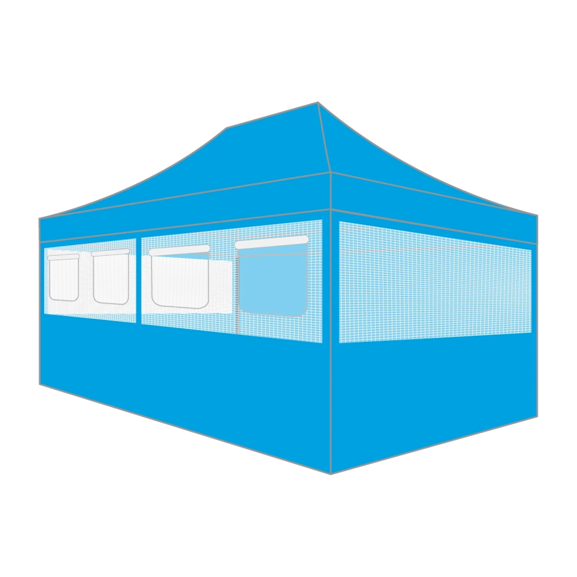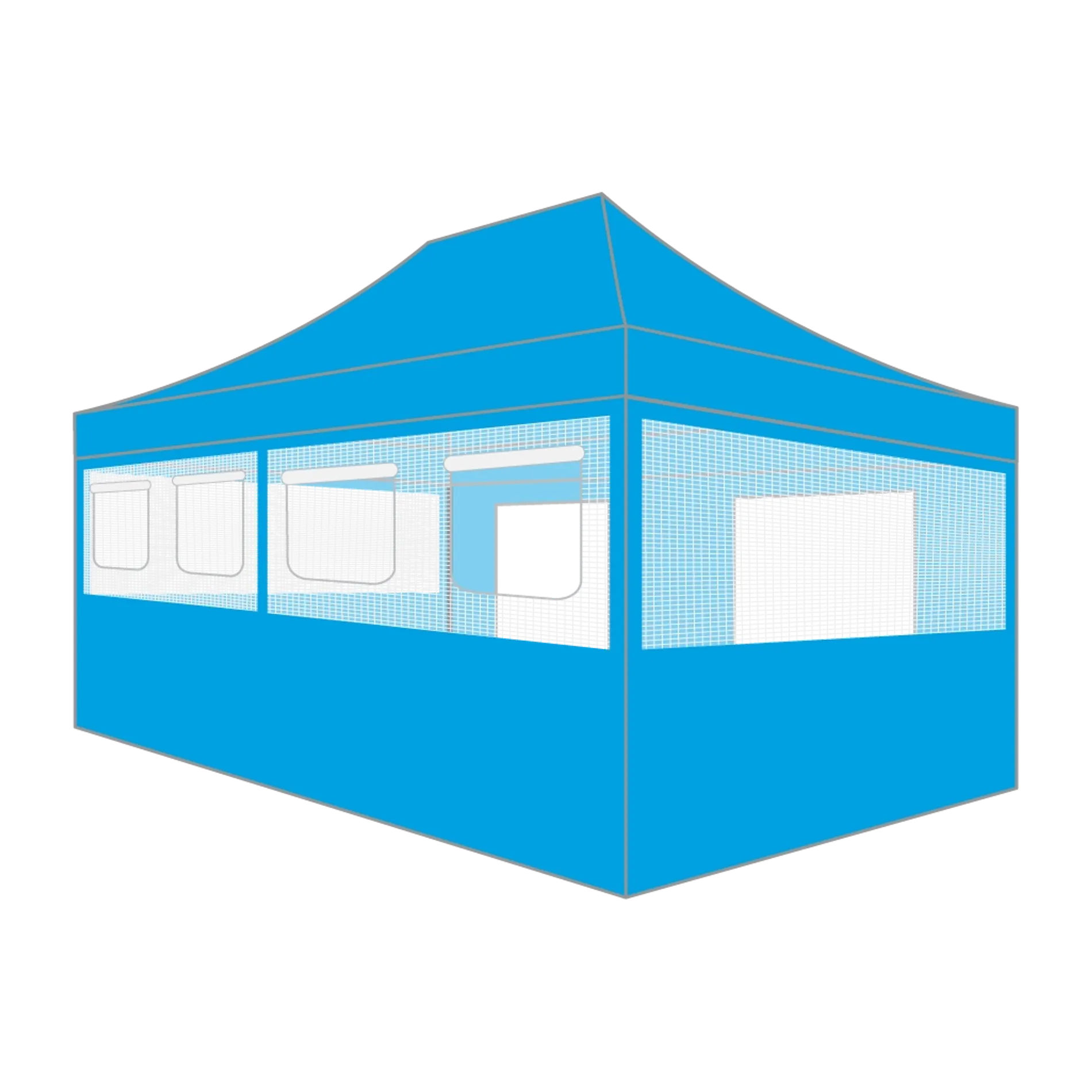 Our 13x20 custom pop up tents options come equipped with essential features, including water resistance, wind resistance, flame resistance, and UV protection, making them ideal for outdoor use. We also offer sidewall customization to enhance privacy and shelter.