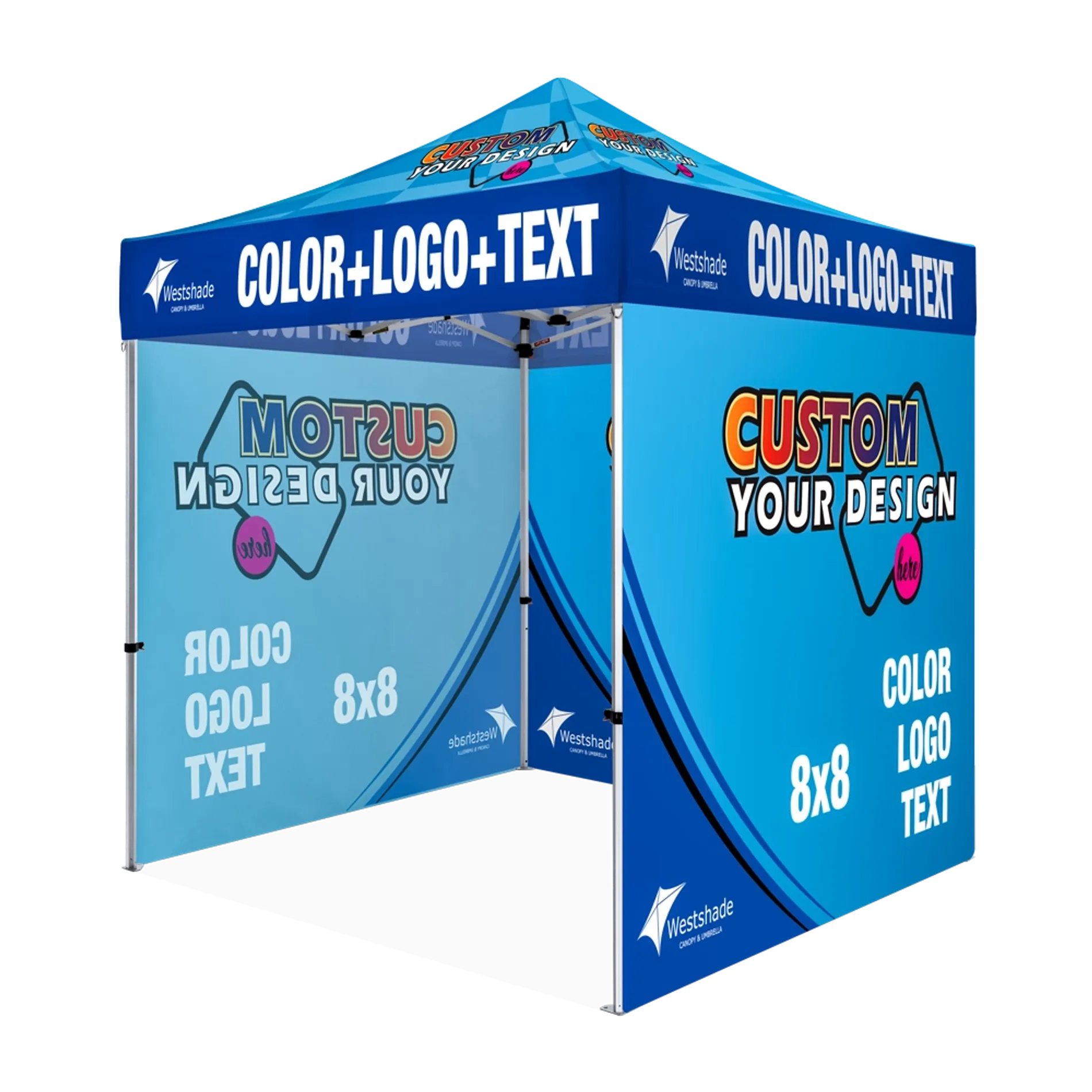 Westshade offers a range of custom options for the custom 8x8 canopy tent, allowing you to select colors, graphics, and designs that align with your brand.