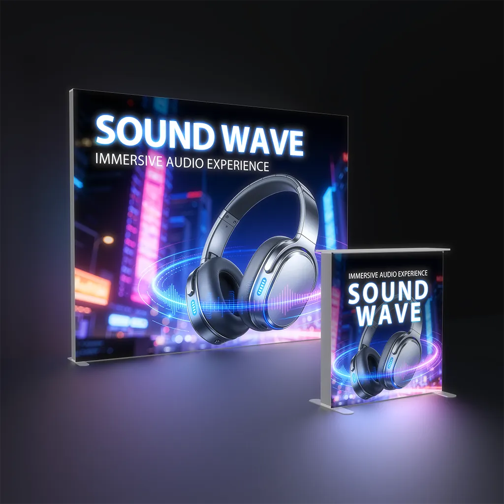Maximize your brand visibility with our premium 10x10 Backlit Trade Show Display. This portable tension fabric lightbox kit combines high-impact LED illumination with a functional shelving system for product merchandising.