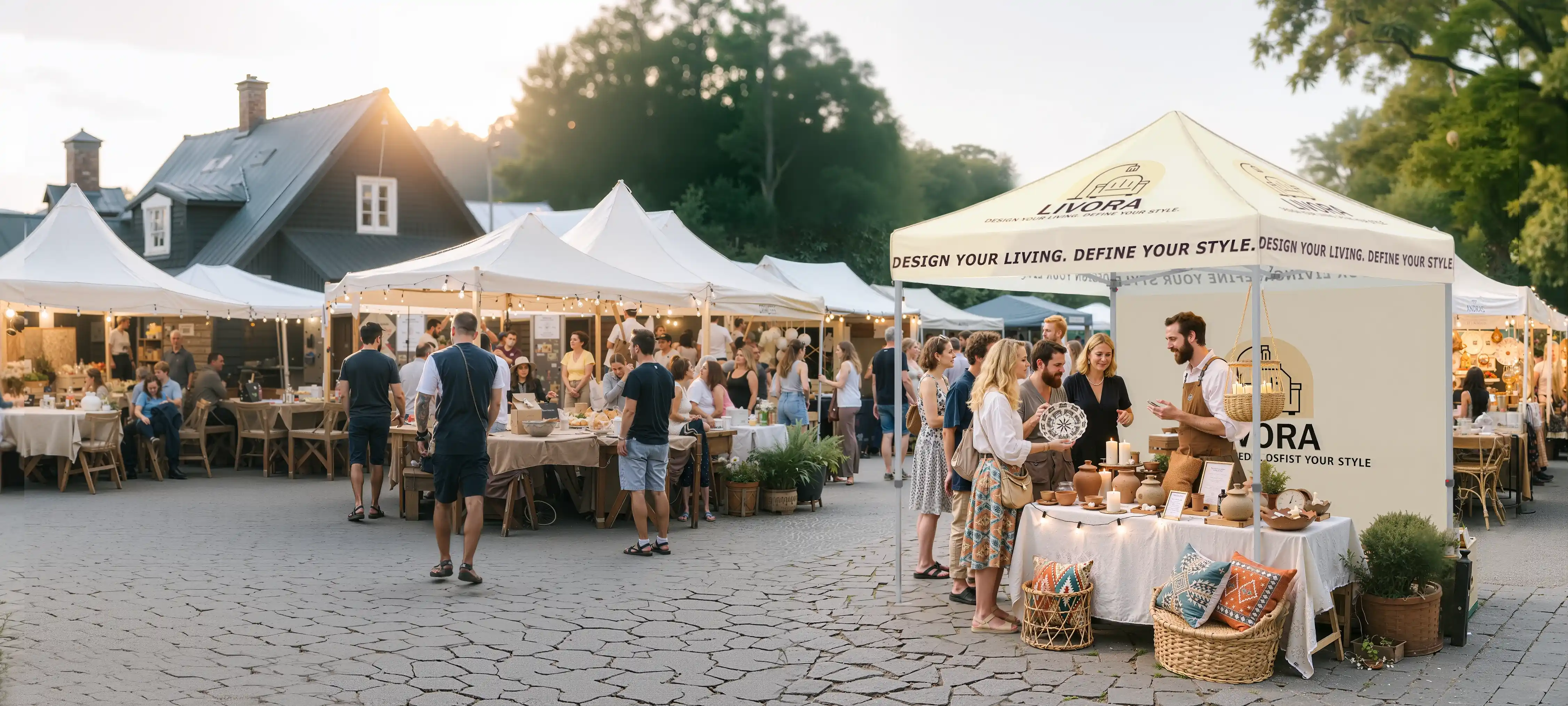 From furniture to crafts, home-focused vendors use our custom tents to create inviting mobile storefronts that attract customers and build trust.