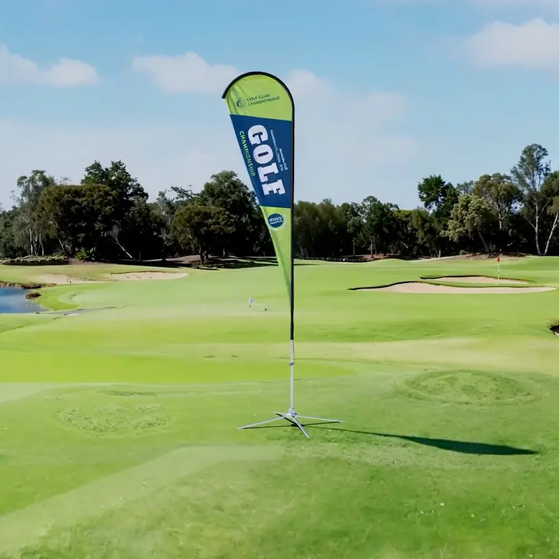 The raindrop flag is perfectly suited to promote indoor and outdoor events. We use high quality dye-sublimation printing so colors are brighter and your flag lasts longer.